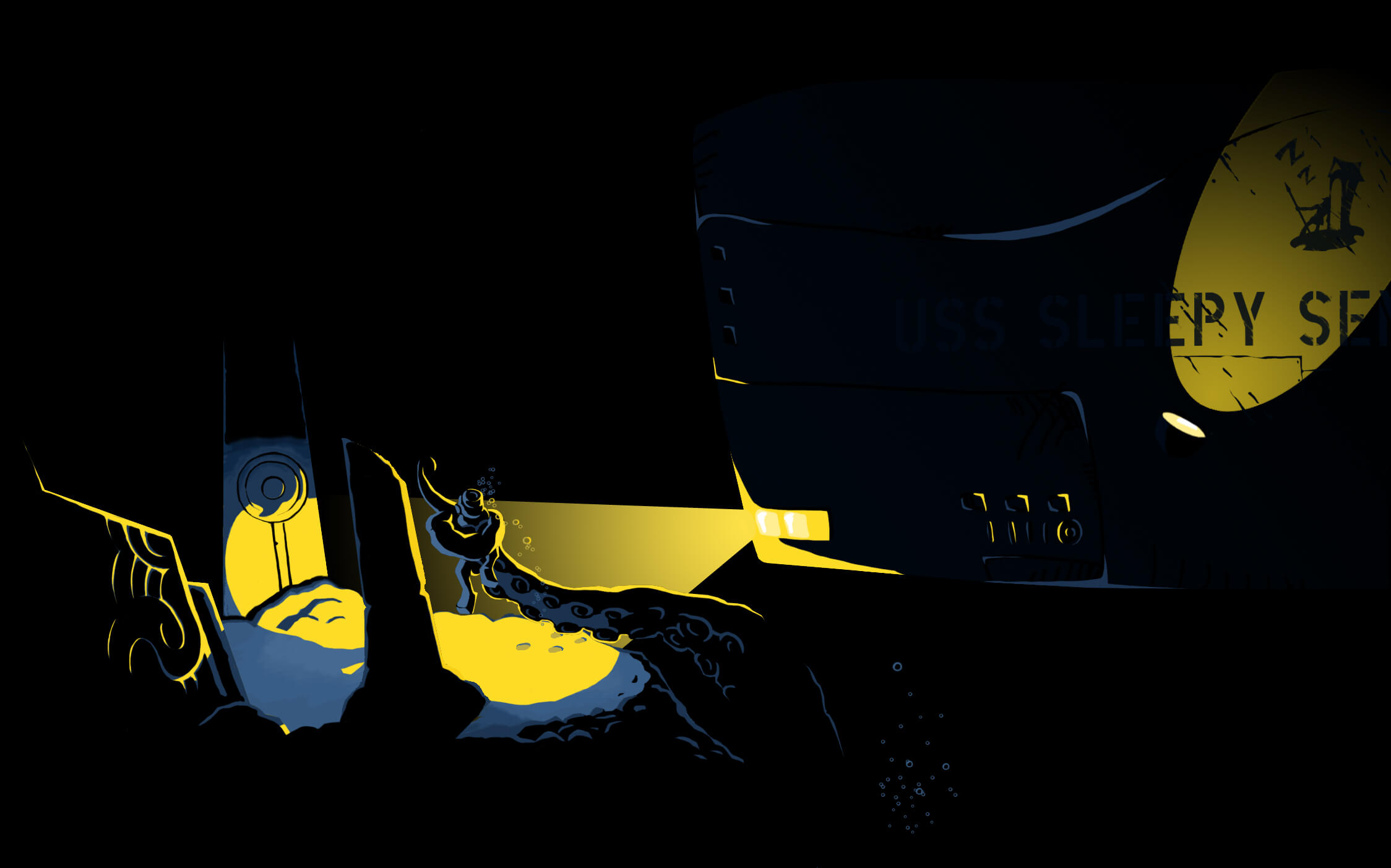 Her last comment makes me scoff. Ought to be grateful we have any kind of outside visibility at all, especially at this depth. Engineering worked day and night for that periscope to work as well as it did. Besides, it's a small miracle that it survived the incident when half the sub is flooded and most systems are out cold. She seems to have calmed down and forgotten about the scare she had earlier. Mission accomplished, I suppose; now if only I could calm my own ragged nerves as well.