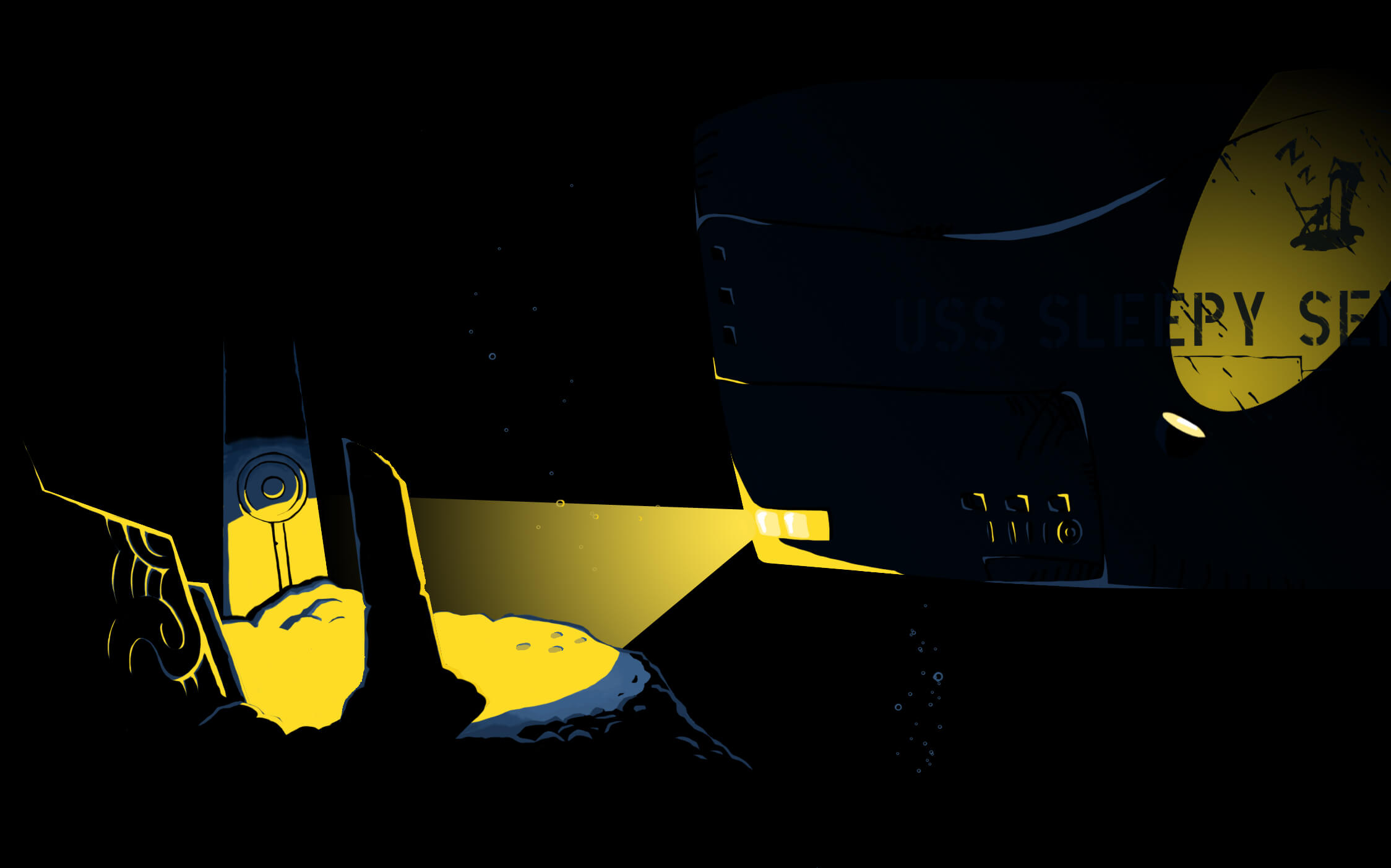 What else can I do? I sit and wait for her to tell me what the hell is going on out there. The only way to actually see out of the ship is the periscope, and at these depths, with the damage we've sustained, just raising it carries a considerable risk of further flooding. At long last, she breaks the silence once again: "Okay, so this might sound a bit insane, but remember the emergency radio transponders they put on these suits?"